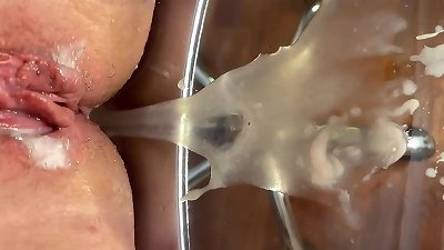 I pulled the wife's pants down and torn up her hard until I had a uber-cute jizz flow in her pussy and my cum ran out